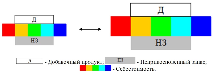 В общественной (коллективной, общинной) собственности валовый продукт (ВВП) распределялся так. Делались запасы производственный и «на чёрный день». К производственному относятся сырьё, запчасти и т.п., что необходимо для следующего цикла производства. Неприкосновенный запас (НЗ) – стратегический, на случай природных (ныне и техногенных) катаклизмов, неурожайных годов, войн и т.п. (ныне пенсионный, медицинский и социальный фонды, коммуникации, ВПК). Далее всё распределялось по потребностям среди населения: тружеников, иждивенцев, на образование, медицину, территориальное благоустройство, охранную дружину и т.д. А то, что было произведено сверх самодостаточного, шло на обмен за окраину общности. Приобретённый на эти денежные средства (а в основном по бартеру) продукт (Товар) и есть показатель повышения благосостояния. Понижением же его уровня являлось залезание в заначку, в НЗ. Формула Товар-Деньги-Товар выглядела примерно так: