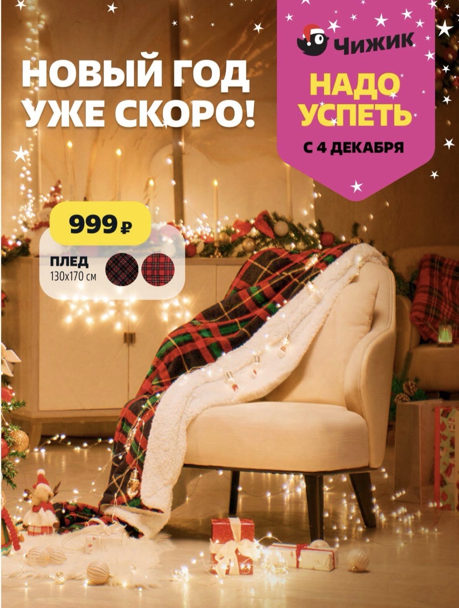 ♦️Обложка всегда лицо каталога! И тут во всей красе кресло с пледом! ПЛЕД это и есть ноинка, которую Чижик предпочел разместить как символ уюта и новогодних праздников и подарок 🎁 Обычно тут нет особого описания, попозже посмотрим его поближе! 😊💞Цена: 999₽ Выглядит уютно 😌