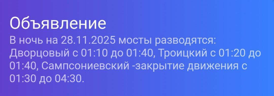 ❗️Этой ночью на пятницу 28 ноября мосты не разводят, кроме этих трех