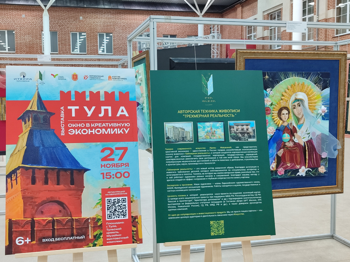 Экспозиция организована Галереей современного искусства художника Ирины Ивашкиной и Группой компаний "Итерра", являющейся российским поставщиком IT-оборудования и занимающейся системной интеграцией и автоматизацией бизнес-процессов. Подобный метод создания картин, когда к традиционным краскам добавляются различные материалы и элементы, напечатанные на 3D-принтере, был разработан в Тульской области.