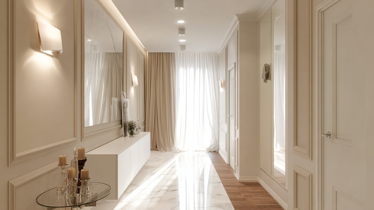 Коридор — часто самое узкое и тёмное помещение в квартире. Но с помощью света его можно визуально увеличить, сделать светлее и удобнее. Главное — не просто добавить больше источников, а правильно направить свет, чтобы изменить восприятие объёма.