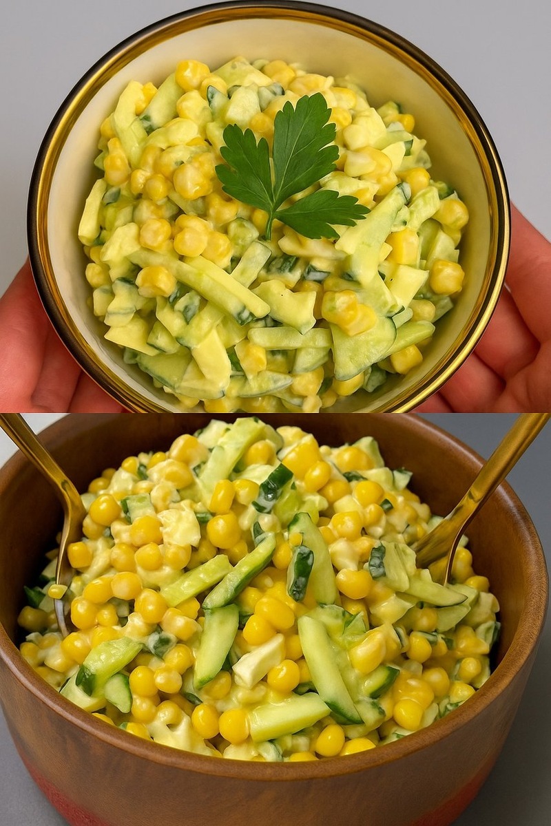 Если вы ищете салат из простых продуктов, но при этом вкусный и сытный — это он! Хрустящие огурцы, яйца, ароматная петрушка, нежный сыр и сладкая кукуруза отлично сочетаются между собой. Заправляем всё ложечкой майонеза — и салат готов за 10 минут. Идеально как на каждый день, так и к праздничному столу! ИНГРЕДИЕНТЫ ✅ Огурцы — 3 шт. ✅ Яйца — 5 шт. ✅ Сыр — 100 г ✅ Кукуруза консервированная — 1 банка ✅ Петрушка — 1 пучок ✅ Майонез — 3 ст.л. ПРИГОТОВЛЕНИЕ 1. Яйца отварите вкрутую, остудите и нарежьте кубиками. 2. Огурцы нарежьте мелкими кусочками. 3. Сыр натрите на крупной тёрке. 4. Петрушку мелко порубите. 5. С кукурузы слейте жидкость. 6. Смешайте все ингредиенты в салатнике, добавьте майонез и аккуратно перемешайте. СОВЕТЫ • Для более лёгкого вкуса замените майонез на йогурт или сметану. • Подходит как самостоятельное блюдо или гарнир. • Салат особенно вкусен, если дать ему настояться 15–20 минут в холодильнике.