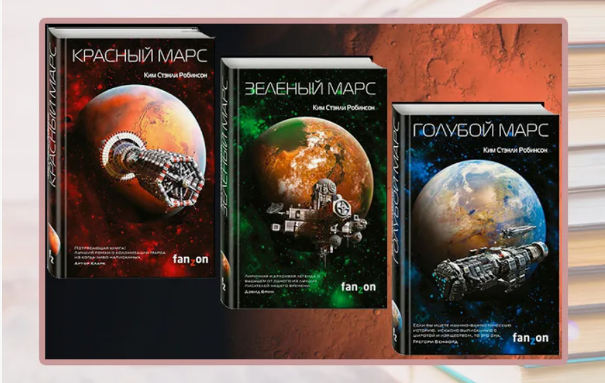 Фантастика о космосе бывает разной. Иногда она куда ближе к фэнтези: огромные Галактические империи, межзвёздные перелёты не отличимы от магии, а многочисленные пришельцы мало чем отличаются от тех эльфов или орков. Но бывает и по-другому: реалистично, сурово, захватывающе. Особенно часто это бывает с книгами, которые когда-то называли "фантастикой ближнего прицела". Такая фантастика рассказывает об условно недалёком будущем и стремится быть максимально правдоподобной. В этой подборке - несколько отличных книг и циклов об освоении человечеством планет Солнечной системы. Марсианская трилогия Кима Стэнли Робинсона Про этот цикл я уже когда-то писал. Романы "Красный Марс", "Зелёный Марс" и "Голубой Марс" писались с 1992 по 1996 год. Это очень реалистичная история о колонизации Марса. Каждая часть (согласно цвету в названии) символизирует тот или иной этап освоения планеты: колонизация, терраформирование, долгосрочные последствия влияния людей. Сразу скажу - такая фантастика не для все