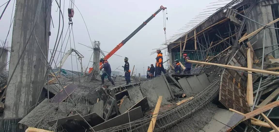 Экстренные службы ликвидируют последствия обрушения строящегося ангара в Южно-Сахалинске