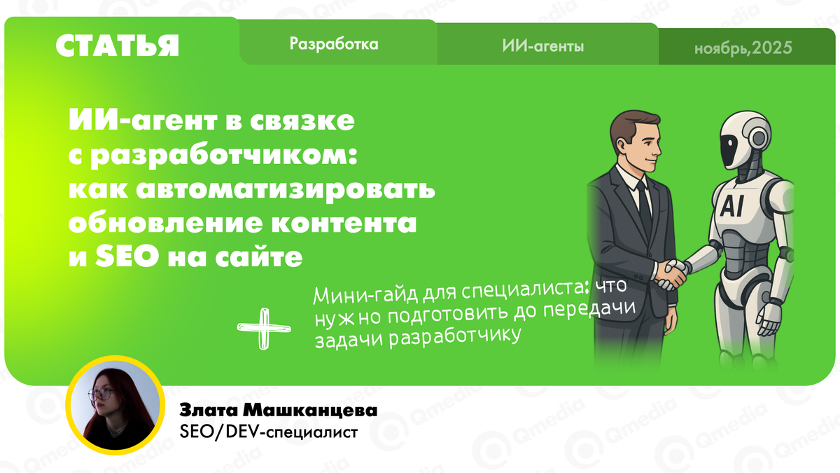 Современные средства автоматизации позволяют внедрять ИИ-агентов в рабочий цикл и улучшать показатели в проектах. В связке «разработчик + ИИ-агент» удается быстрее обновлять текстовые блоки, расширять структуру сайта и корректировать SEO-параметры.