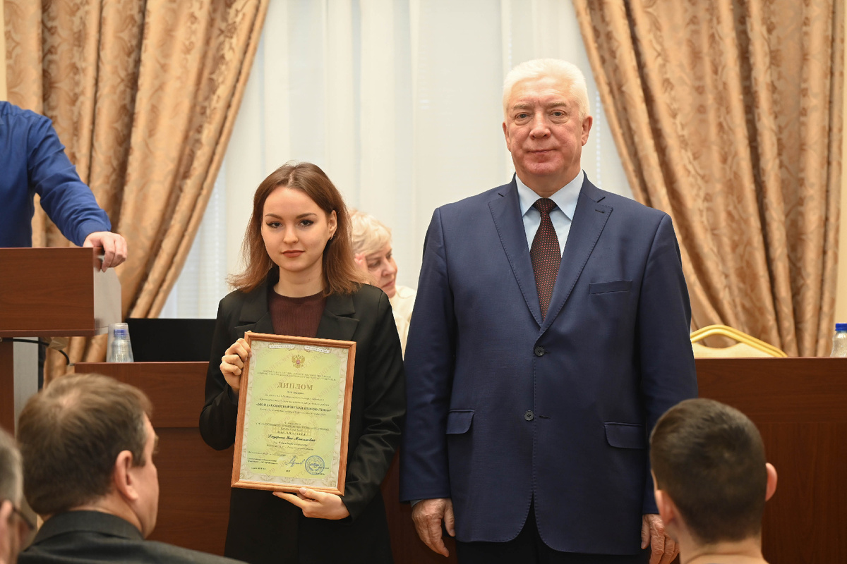 27 ноября на заседании Ученого совета Пензенского государственного университета ректор Александр Гуляков поздравил студентов и их научных руководителей с победами в престижных конкурсах и олимпиадах. Глава вуза подчеркнул высокий потенциал студенческой молодежи ПГУ и вручил заслуженные награды. В рамках XX Всероссийского конкурса молодежи образовательных и научных организаций на лучшую работу «Моя законотворческая инициатива» студенты Юридического института ПГУ показали выдающиеся результаты. Альбина Гаджибаева удостоена диплома III степени в номинации «Образование, наука, здравоохранение и культура». Яна Хадарина получила диплом II степени в номинации «Государственное строительство и конституционные права граждан». Екатерина Плясунова стала обладательницей диплома I степени в номинации «Оборона и безопасность». За подготовку призеров конкурса награждены: Наталья Макеева (доцент кафедры «Теория государства и права и политология») — по направлению «Образование, наука, здравоохранение и