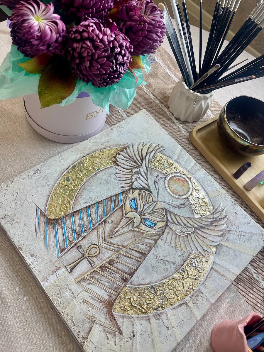 Ра — один из самых древних и почитаемых богов Древнего Египта, олицетворение Солнца Символизирует круг, чистую целостность, бесконечность и цикличность вечного обновления. Ра верили как в создателя богов, людей и всего сущего. Он совершал свой священный путь по небесному своду каждый день, а ночью отправлялся в подземный мир, чтобы победить тьму и вновь принести свет на рассвете. В этом глубокий архетипический смысл: каждый новый день — это маленькая победа света внутри нас, нашего сознания, когда мы позволяем себе светить, даже в самой тёмной ночи. Чаще всего Ра изображают как человека с головой сокола, увенчанную солнечным диском — самым универсальным символом энергии, силы и осознанности. Работая с образом Ра, мы вспоминаем о своём предназначении “сиять”, делиться теплом с людьми вокруг, создавать и вдохновлять! Твори свой внутренний восход — именно это состояние рождает магию. Добавишь к своему рисунку символ солнца? Поделись, если вдохновишься! ☀️🧡