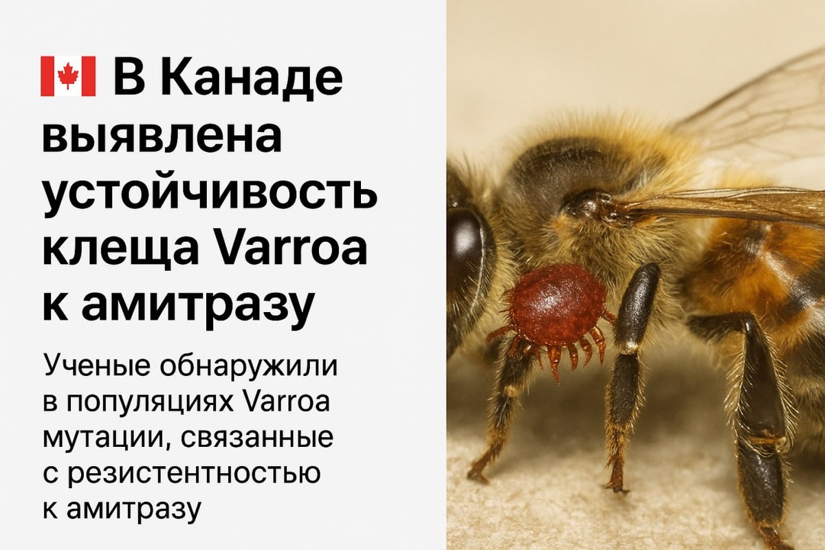 🇨🇦 Канадские пчеловоды откажутся от амитраза? Новое исследование, проведённое в провинции Альберта и опубликованное в журнале Scientific Reports, подтверждает: в канадских популяциях клеща Варроа всё шире распространяется устойчивость к амитразу — одному из ключевых акарицидов, на котором долгие годы держалась система борьбы с варроатозом. Учёные протестировали клещей с различных пасек, подвергая их воздействию амитраза (в форме препарата Apivar). Результаты оказались тревожными: в большинстве хозяйств смертность варроа составляла всего от 22 до 55 %, что резко контрастирует с ожидаемой высокой чувствительностью. Лишь в одном из обследованных хозяйств (AB-92) смертность достигла 92 %. Авторы предполагают, что это исключение может объясняться тем, что на данной пасеке амитраз не применялся на протяжении нескольких сезонов — а значит, у клеща не было селективного давления для развития устойчивости. Генетический анализ подтвердил распространение мутации Y215H в гене рецептора октопам