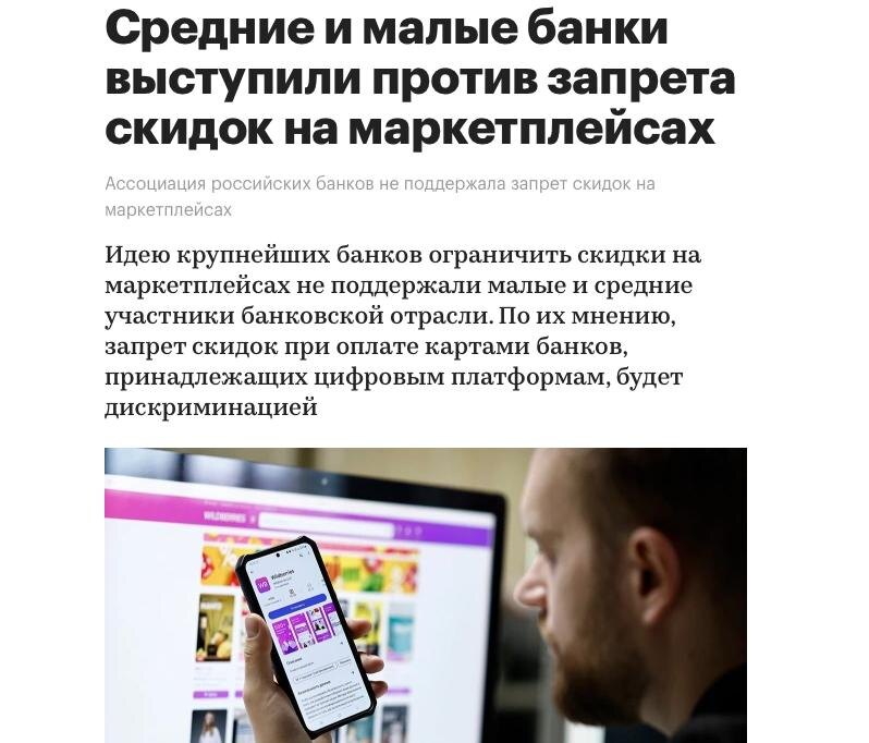 Маркетплейсы vs банки — счёт уже 3:0 Средние и малые банки официально не поддержали запрет скидок на маркетплейсах. Ассоциация российских банков (АРБ), куда входят 60+ банков, сказала прямым текстом: запретить скидки при оплате картами банков маркетплейсов — это дискриминация. И тут важно: проблема «пяти крупных» оказывается не проблемой всего рынка. У остальных банкиров логика простая — раз уж сами банки делают кешбэки и бонусы в своих экосистемах, почему маркетплейсам это запрещать? АРБ прямо заявляет: крупные банки сами сидят на господдержке, зарплатных проектах, субсидиях и при этом хотят отрубить конкурентам инструменты продвижения. Ещё и под лозунгом «борьбы за равные условия». Вывод: На поле снова минус один аргумент у банков. Судя по всему, реальное банковское сообщество не видит проблемы в скидках маркетплейсов. А вот в попытке крупнейших игроков «урезать конкурентов через законы» — видит. Маркетплейсы — банки: 3:0. Дальше будет интереснее. Marketplace_biz - отдай свой б
