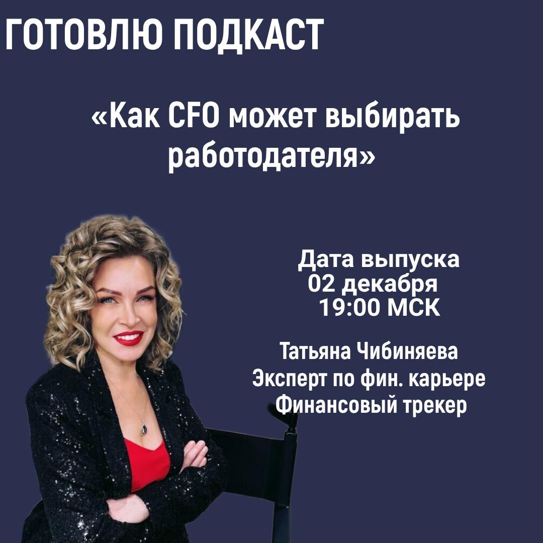 Напоминаю, что на следующей неделе я запишу подкаст-разбор «Как CFO может выбирать работодателя». Поговорим про 3 вещи: 1️⃣как читать вакансии и предложения между строк 2️⃣как понимать, вырастите ли вы в этой роли или сожжете ресурс 3️⃣как выстроить свою воронку так, чтобы не соглашаться из страха Если у вас есть конкретный вопрос или ситуация, которую хотелось бы разобрать оффер, который вы сейчас обсуждаете, позиция, из которой хочется уйти, вариант, который манит, но есть сомнения ✏️напишите мне на @TatianaChib_team с пометкой #подкаст Я соберу вопросы и постараюсь выстроить подкаст так, чтобы вы услышали себя в чужих историях. Иногда этого достаточно, чтобы в следующий раз выбрать не только компанию, но и себя.