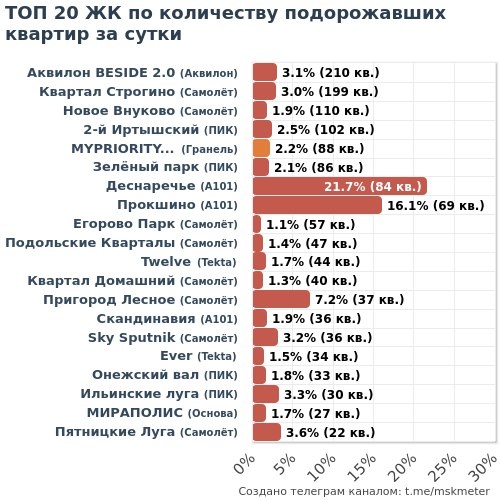 📈 Рост цен в: 95 ЖК (1771 кв.) 🏆 ЛИДЕРЫ ПО РОСТУ: ПИК 32 ЖК 429кв +3,8% Самолёт 23 ЖК 647кв +6,4% A101 7 ЖК 205кв +13,9% 1 ДСК 4 ЖК 13кв +20,5% FORMA 3 ЖК 32кв +1,2% Ingrad 3 ЖК 3кв +5,8% Гранель 3 ЖК 96кв +1,7% ЛСР 3 ЖК 3кв +2,8% MR Group 3 ЖК 6кв +3,1% Донстрой 2 ЖК 4кв +9,9% 👇 Полная статистика: 📲 В Telegram — быстро посмотреть 🌐 На MskMeter.ru — графики цен и скидки за любой период