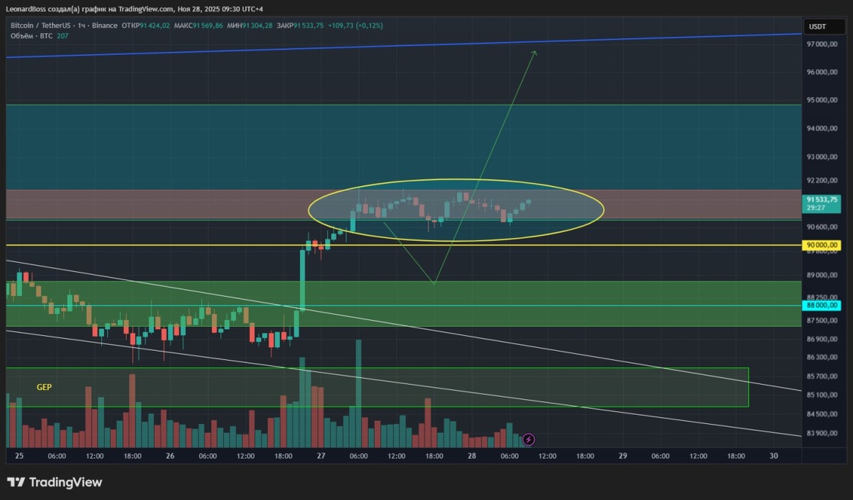 В ответ на пост #мнениепорынку 🕯🕯🕯 ⚠️Продолжаем наблюдать суточную консолидацию BTC над круглым уровнем 90К, отмечая, что всё это проходит в промежуточном блоке сопротивления = пока цена в нём, технически приоритет на стороне снижения! Из позитива отмечу тот факт, что цена закрепилась вчерашней полной свечой над указанным уровнем!! ⚠️4Н ТФ по графику СМЕ говорит о мощном давлении шортистов на уровень 91300, который ранее обозначался, как недельный, когда в конце 2024 года долгое время держал напряжение продавцов и в итоге капитулировал, после чего цена провалилась к уровню 78К, где на тот момент болтался открытый GEP!! ⚠️Опасность для альтов вызывает очередной выход доминации BTC выше уровня 59%, где на росте цены битка две крайние дневные свечи перекрыли обнадеживающее выпадения графика ниже данного уровня. При этом, график пробил среднесрочную трендовую сопротивления с логичным выходом выше и ретестом уровня 60% = ретест альтами локальных Low!! P.s. подводя итог: помним, что с