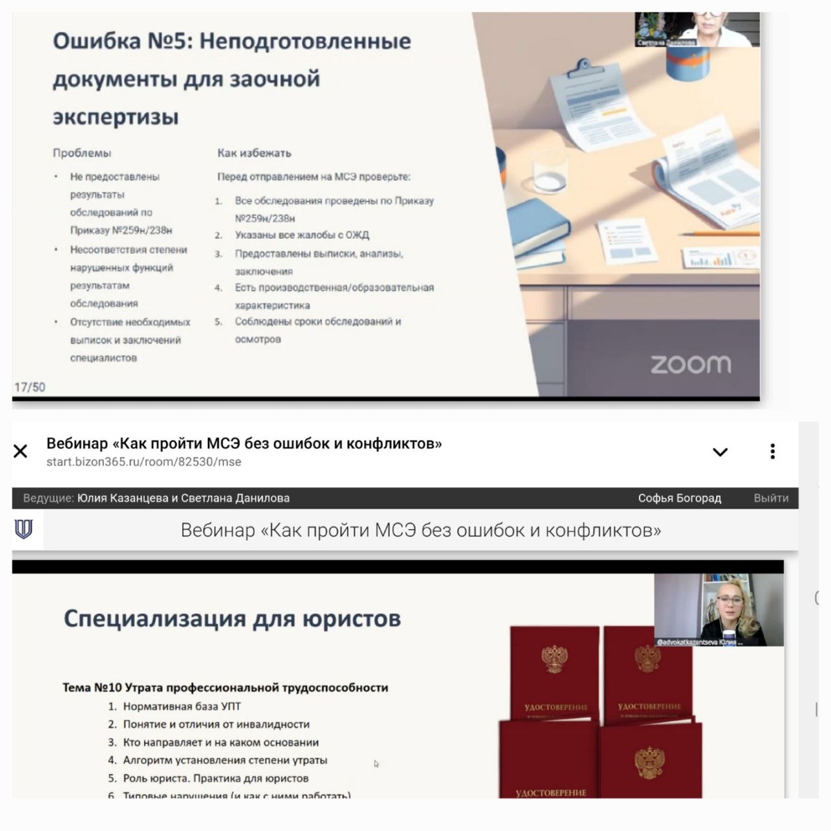 В последнее время я активно погружаюсь в мир знаний: прохожу курсы, посещаю вебинары! Делюсь с вами! 📚➡️🤝 Вебинар для тех, кто отстаивает свои права в сфере Медико-социальной экспертизы (МСЭ). Прохождение МСЭ — это сложный и стрессовый процесс 🫣, в котором знание законов решает ВСЁ. Незнание тонкостей может стоить вам или вашему подопечному положенной группы инвалидности. 😱 Спикерами выступили профессиональные юристы 👩⚖️, среди участников были не только коллеги, но и люди, у которых накопилось много вопросов. Это лишний раз доказало мне, что специалистов в этой области действительно не хватает, и тема невероятно востребована! 🔥 Мы разобрали: ✅ Типичные ошибки: ✅ Алгоритм прохождения МСЭ: Четкий план действий ✅ Основные нормативные акты: 🏛️ Разобрали ключевые законы и подзаконные акты ✅ Установление группы инвалидности: как правильно представить медицинские документы Этот вебинар — не просто теория, а готовое практическое руководство к действию! 📋 #юридическаяпомощь #социальна