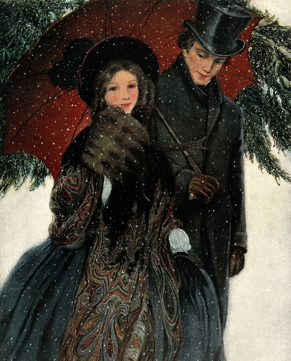 Пара, гуляющая под снегом, 1900