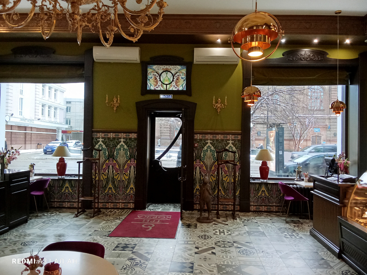Гуляя по городу заглянули в "Три коржа". Очень понравилась обстановка, поэтому решили перекусить. Самое вкусное был чай облепиховый, а самое не вкусное это торт "Наполеон". Это не торт, пачка невкусного маргарина. Вот такой вот вкус :) Люстра впечатлила. Раньше на ж.д. вокзале на подобие были. Очень они мне нравились. Только те были хрустальные. Вот только руки помыть надо спуститься в подвал, очень неудобная лестница. Будите в Красноярске, загляните на проспект Мира 96 в "Три коржа", попробуйте чай облепиховый... А ещё по этому адресу японская кухня :)... Всего доброго!
