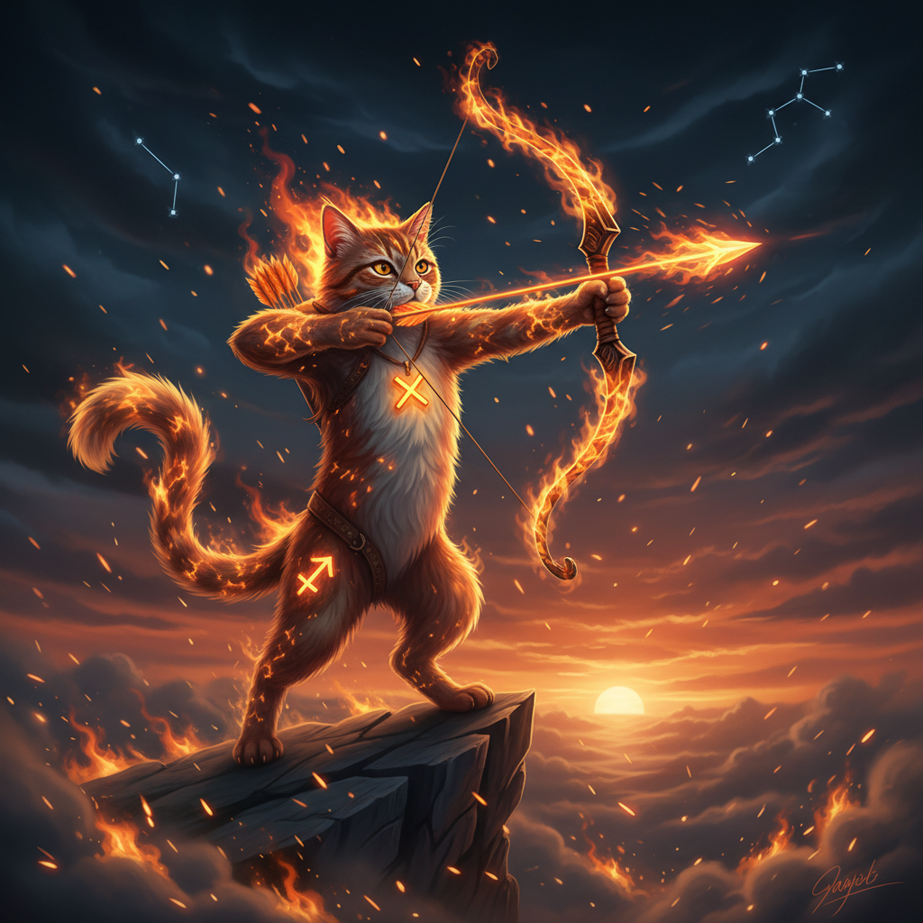 Знакомьтесь: Кот-Стрелец! Если на вашем окне сейчас гордо сгорбился пушистый философ, задумчиво наблюдающий за голубями, или по квартире мчится рыжая стрела с горящими глазами – поздравляем, вы обладатель самого неугомонного зодиакального кота! Кот-Стрелец – это не просто питомец. Это ходячий император приключений, мохнатый оптимист и вечный космонавт домашней галактики. Как с таким ужиться и остаться в добром здравии? Ловите инструкцию и улыбайтесь почаще! Кот-Стрелец не потерпит жизненных ограничений: закрытая дверь – вызов, подоконники – стартовая площадка для покорения мира. Именно его вы найдете там, где закрыто, убрано и вообще "никуда не пускают". Совет по взаимодействию: