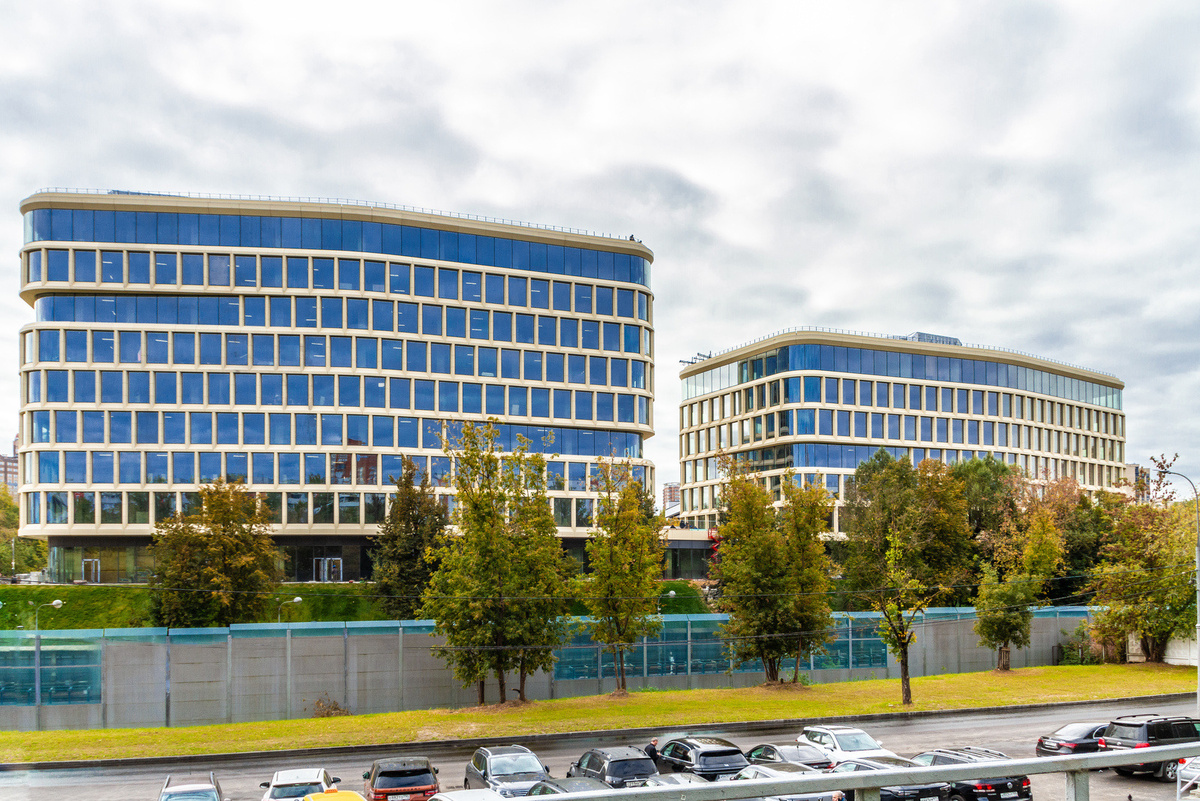 «Бизнес-центр находится в высокой степени готовности — на объекте закончено устройство светопрозрачных конструкций фасада и кровли. Застройщик использовал ударопрочное стекло российского производства с повышенными качественными характеристиками по прочности, защите от вредного УФ-излучения, а также тепло- и звукоизоляции. Фасады отделаны стеклокомпозитом — прочным материалом, который используют в судостроении, авиационной и космической промышленности. Декоративные пилоны с текстурой песчаника, интегрированные в стоечно-ригельную систему, позволили создать плавные очертания двух корпусов без единого угла», — отметил Антон Слободчиков.