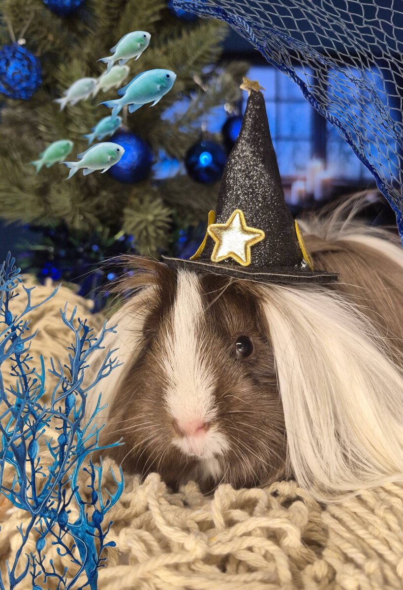 Перуанские свинки- настоящие модели среди морских свинок. И Васаби лучшее тому доказательство ✨ Её длинная шерсть может расти десятками сантиметров, образуя настоящие шёлковые волны. 🌊 Когда она идёт, кажется, будто за ней тянется маленький хвостик облака 🐹🌫️ И что самое милое - Васаби вообще не хвастается своей красотой. Ей важнее вкусно покушать и тихо полежать.