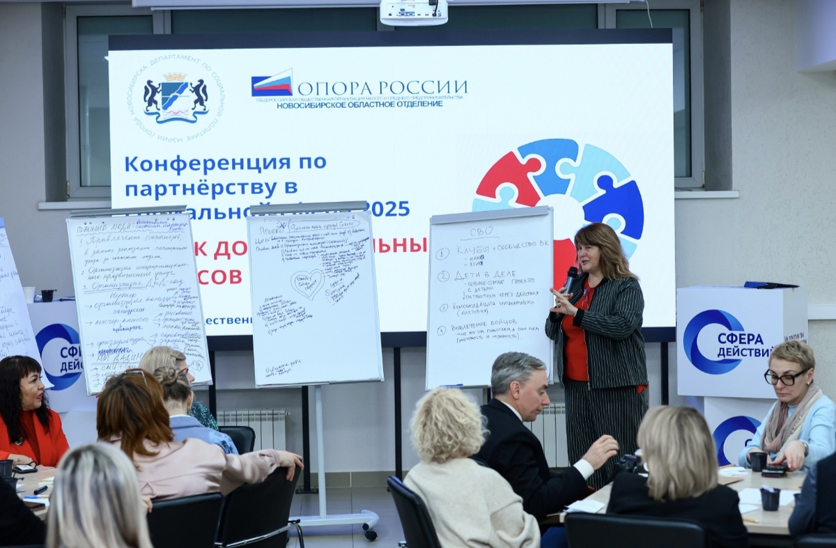 В среду, 26 ноября, в Новосибирске впервые состоялась конференция, посвящённая вопросам партнерства в социальной сфере для представителей подведомственных учреждений департамента по социальной политике мэрии Новосибирска, представителей некоммерческих организаций, а также среднего и малого бизнеса. Мероприятие прошло в рамках обучающего курса «Партнёрские технологии для социальной сферы: как выстраивать сотрудничество с бизнесом и НКО для решения задач территории». Обучающий курс был проведён по инициативе общегородского социального проекта «ОПОРА – детям» Новосибирского областного отделения Общероссийской общественной организации малого и среднего предпринимательства «Опора России» при субсидированной поддержке департамента по социальной политике, а конференция стала одним из его финальных мероприятий. В течение нескольких часов на площадке Дома общественных организаций после двух месяцев обучения, которое включало в себя теоретические и практические модули, участники мероприятия проя