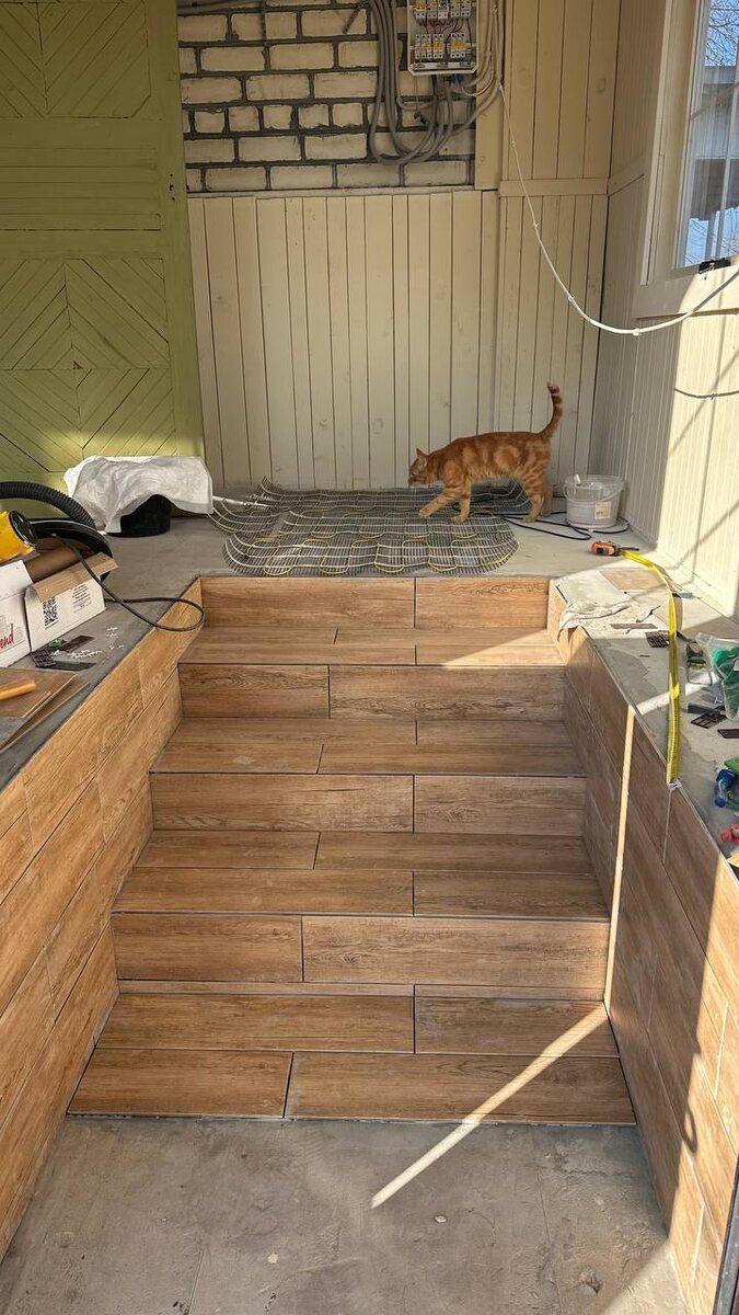 Процесс идёт) решили сделать кусочек тёплого пола, чтобы обувь там сушилась