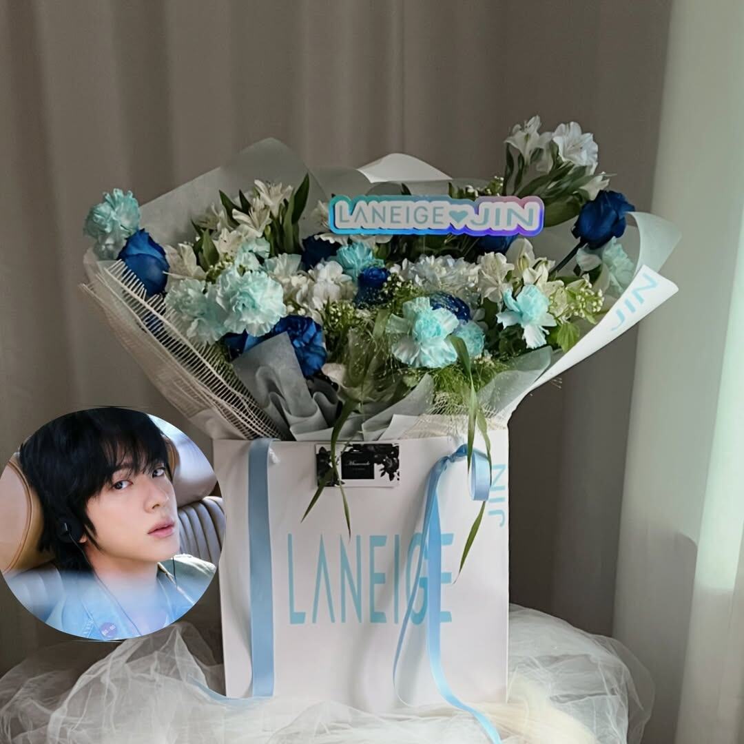 🍊 Mamonde Flower опубликовали цветочную композицию от Laneige, отправленную Джину в Instagram: Это было доставлено Джину из BTS 🩵🤍 #JIN @kumihobts