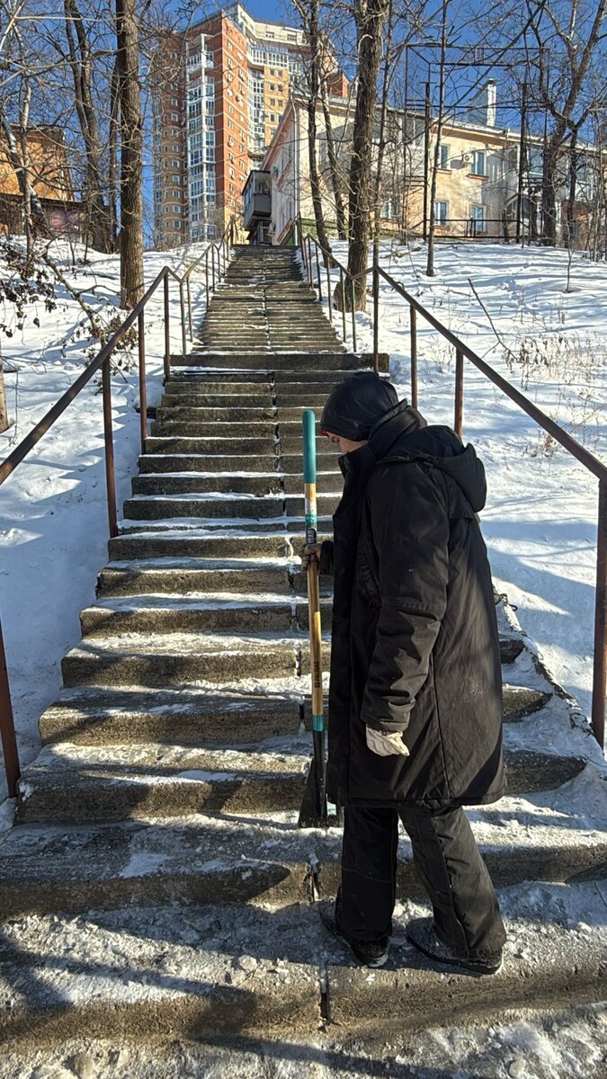 В связи со снегопадами, прошедшими в последние дни, администрация города принимает меры по обеспечению безопасности и порядка на территории Кировского района. Сегодня продолжена работа по очистке и подсыпке песком тротуаров, лестниц и проездов. Осуществлена подсыпка песком проездов по улицам: ✅ Брестская ✅ Фрунзе ✅ Орджоникидзе ✅ Запарина. Сотрудники комитета активно приняли участие в «снегоуборочной пятнице» по очистке тротуаров улиц города Хабаровска. Предприятия и организации всех форм собственности также подключились к уборке от снега прилегающих территорий. Комитет просит руководителей взять под личный контроль содержание прилегающих территорий, а также очистку карнизов зданий и сооружений от сосулек. Просим жителей соблюдать меры предосторожности: быть внимательными при прохождении по снегу и льду, особенно вблизи дорожных и пешеходных частей. Администрация города благодарит всех жителей за понимание и сотрудничество. Совместными усилиями мы обеспечим безопасность и комфор