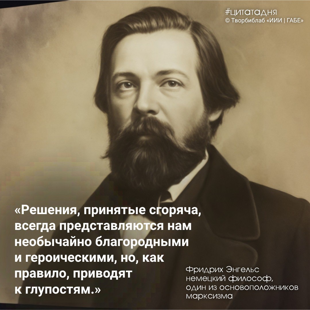 Сегодня 205 лет со дня рождения Фридриха Энгельса (1820-1895), великого немецкого философа, историка и друга Карла Маркса. Энгельс получил прекрасное образование и был известен как интеллигентный и эрудированный собеседник. Он свободно владел восемью языками, включая русский. Каждое воскресенье он устраивал вечеринки для своих соратников в Лондоне, которые длились до поздней ночи. Однажды дочь его друга Маркса, Дженни Лонге, попросила Энгельса заполнить анкету. Его ответы помогли узнать, что он увлекался Гете, Шекспиром и Лессингом, но прохладно относился к богослову Чарльзу Сперджену. Энгельс любил людей с веселым характером и не терпел лицемерия. Несмотря на философский подход к жизни, он боялся стоматологов. #цитатадня #история