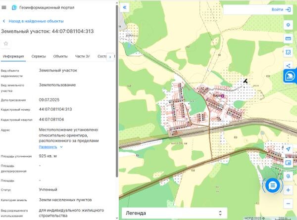 Название: 44:07:081104:313, площадью 925 кв.м., местоположение: Костромская область, Костромской район, п