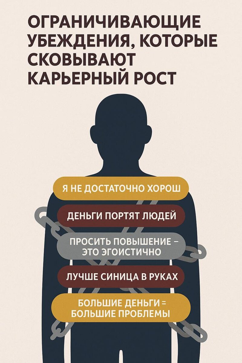 Почему вы не растете в доходе? 🤔 В своей практике я часто слышу от клиентов одно и то же: «Хочу роста, но…». Дальше следуют разные объяснения, но корень часто один - установка деньги = стресс. Это защитный механизм психики, который тормозит вашу карьеру. Как это выглядит: 🔵Внутренний диалог перед запросом повышения: «А справлюсь ли я с увеличенной зоной ответственности? Лучше уж стабильная и понятная текучка, чем этот стресс». 🟢Объяснение самому себе, почему не уходишь в более оплачиваемую компанию: «Там гонка, конкуренция, выгоришь за полгода. А здесь коллектив привычный». 🔵Реакция на высокий доход других: «Ну, у него, наверное, нет личной жизни/он постоянно в стрессе/ему просто повезло». 🤯 Ваш мозг пытается уберечь вас от мнимой угрозы. Он уверен: Большие деньги = Большие проблемы, риски, опасность провала. А значит ОГРОМНЫЙ СТРЕСС. Правда в том, что вы уже в стрессе. В стрессе от недостатка денег, от ощущения «застоя», от зависти к более успешным коллегам. Что делат