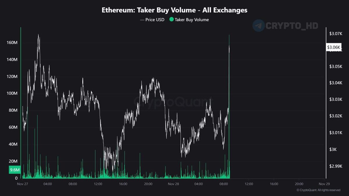 #ончейн 🦋 На всех биржах было куплено #ETH на $160,000,000+ за 1 час – CryptoQuant Crypto Headlines