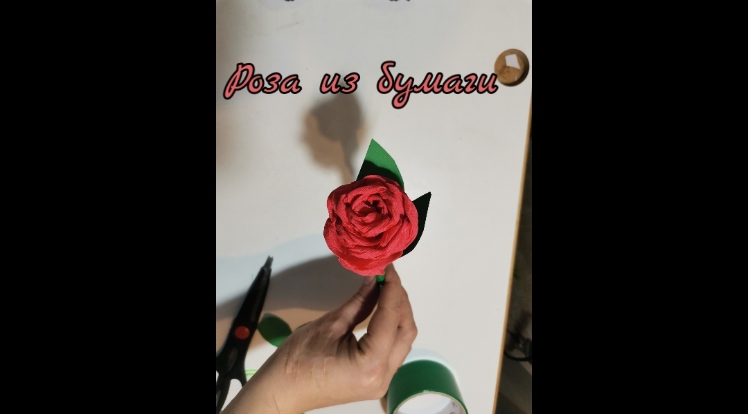 ΠΡΠ΅ΠΌ ΠΏΡΠΈΠ²Π΅Ρ! Π ΡΠ΅Π³ΠΎΠ΄Π½ΡΡΠ½Π΅ΠΌ ΠΌΠ°ΡΡΠ΅Ρ ΠΊΠ»Π°ΡΡΠ΅ Ρ ΠΏΠΎΠΊΠ°ΠΆΡ ΠΈ ΡΠ°ΡΡΠΊΠ°ΠΆΡ ΠΊΠ°ΠΊ ΡΠ΄Π΅Π»Π°ΡΡ ΠΏΡΠ΅ΠΊΡΠ°ΡΠ½ΡΡ ΡΠΎΠ·Ρ ΠΈΠ· ΠΊΡΠ΅ΠΏΠΈΡΠΎΠ²Π°Π½Π½ΠΎΠΉ Π±ΡΠΌΠ°Π³ΠΈ. ΠΠ° Π±ΡΠΌΠ°Π³Π΅ ΠΎΡΠΌΠ΅ΡΠ°Π΅ΠΌ ΡΠΈΡΠΈΠ½Ρ 10 ΡΠΌ ΠΠ»ΠΈΠ½Ρ 60 ΡΠΌ ΠΠΎΠ΄Π²ΠΎΡΠ°ΡΠΈΠ²Π°Π΅ΠΌ ΡΠ³ΠΎΠ» 2 ΡΠ°Π·Π° ΠΠΎΠ΄ ΠΊΡΠ°ΠΉ ΠΊΠ»Π°Π΄Π΅ΠΌ ΠΏΠ°Π»Π΅Ρ Π΄ΡΡΠ³ΠΈΠΌ ΠΏΠΎΠ΄Π²ΠΎΡΠ°ΡΠΈΠ²Π°Π΅ΠΌ Π±ΡΠΌΠ°Π³Ρ ΡΡΠΎ Π±Ρ ΠΏΠΎΠ»ΡΡΠΈΠ»ΠΎΡΡ ΡΠΊΡΡΡΠΈΠ²Π°Π½ΠΈΠ΅. ΠΠ΅Π»Π°Π΅ΠΌ ΡΠΊΡΡΡΠΈΠ²Π°Π½ΠΈΠ΅ ΠΏΠΎ Π²ΡΠ΅ΠΉ Π΄Π»ΠΈΠ½Π΅ ΠΠ°Π»Π΅Π΅ ΡΠ²ΠΎΡΠ°ΡΠΈΠ²Π°Π΅ΠΌ Π±ΡΠΌΠ°Π³Ρ ΡΠΊΡΡΡΠΈΠ²Π°Π½ΠΈΠ΅ΠΌ Π½Π°ΡΡΠΆΡ ΠΠΎΡΠ»Π΅ ΡΠ²ΠΎΡΠ°ΡΠΈΠ²Π°Π½ΠΈΡ ΡΠΊΡΠ΅ΠΏΠ»ΡΠ΅ΠΌ ΠΎΡΠ½ΠΎΠ²Π°Π½ΠΈΠ΅ Π±ΡΡΠΎΠ½Π° ΡΠ΅Π·ΠΈΠ½ΠΊΠΎΠΉ ΠΈΠ»ΠΈ Π½ΠΈΡΠΊΠΎΠΉ ΠΠΎΡΠ»Π΅ ΡΠΊΡΠ΅ΠΏΠ»Π΅Π½ΠΈΡ ΠΎΡΠ½ΠΎΠ²Π°Π½ΠΈΡ ΡΠ΅Π·ΠΈΠ½ΠΊΠΎΠΉ. ΠΡΡΠ°Π²Π»ΡΠ΅ΠΌ ΠΏΠ°Π»ΠΎΡΠΊΡ Π΄Π»Ρ ΡΡΡΠΈ Π² ΡΠ΅Π½ΡΡ Π±ΡΡΠΎΠ½Π° ΡΡΠΎ Π±Ρ ΠΏΠΎΠ»ΡΡΠΈΠ»ΡΡ ΡΡΠ΅Π±Π΅Π»Ρ Π’Π°ΠΊΠΆΠ΅ ΠΏΠΎΠ΄Π³ΠΎΡΠΎΠ²ΠΈΠΌ Π·Π΅Π»Π΅Π½ΡΠ΅ Π»ΠΈΡΡΠΎΡΠΊΠΈ ΠΡΠΈΠ»ΠΎΠΆΠΈΠΌ Π»ΠΈΡΡΠΎΡΠΊΠΈ, Π·Π°ΠΊΡΠ΅ΠΏΠΈΠΌ ΡΠ²Π΅ΡΠ½ΡΠΌ ΡΠΊΠΎΡΡΠ΅ΠΌ ΠΏΠΎ Π²ΡΠ΅ΠΉ Π΄Π»ΠΈΠ½Π΅ ΠΠΎΡ ΡΠ°ΠΊΠ°Ρ Π·Π°ΠΌΠ΅ΡΠ°ΡΠ΅Π»ΡΠ½Π°Ρ ΡΠΎΠ·Π° ΠΏΠΎΠ»ΡΡΠΈΠ»Π°ΡΡ. ΠΠΈΠΆΠ΅ Ρ ΠΎΡΡΠ°Π²Π»Ρ Π²ΠΈΠ΄Π΅ΠΎ Ρ ΠΏΠΎΠ΄ΡΠΎΠ±Π½ΡΠΌ ΠΎΠΏΠΈΡΠ°Π½ΠΈΠ΅ΠΌ . Π‘ΠΏΠ°ΡΠΈΠ±ΠΎ Π·Π° Π²Π½ΠΈΠΌΠ°Π½ΠΈΠ΅! ΠΡΠ΄Ρ ΡΠ°Π΄Π° Π²Π°ΡΠΈΠΌ π , Π° ΡΠ°ΠΊΠΆΠ΅ ΠΊΠΎΠΌΠΌΠ΅Π½ΡΠ°ΡΠΈΡΠΌ ΠΈ ΠΏΠΎΠ΄ΠΏΠΈΡΠΊΠ°ΠΌ.