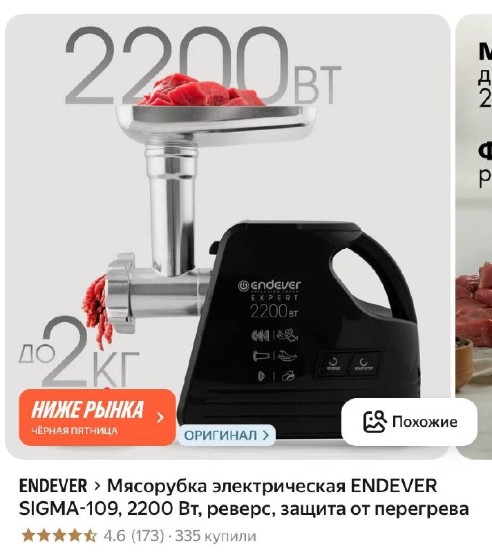 Мясорубка электрическая ENDEVER SIGMA-109, 2200 Вт, реверс, защита от перегрева https://market.yandex.ru/cc/87j5jP ✅ Подписаться 🔣 Бот с промокодами