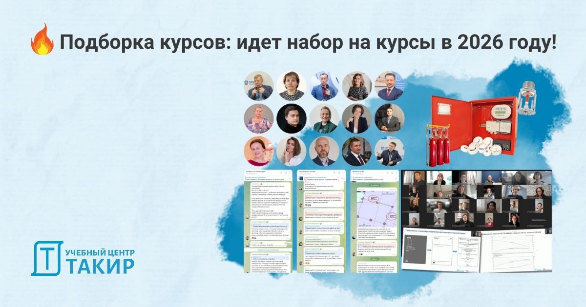 🔥 Подборка курсов: открыт набор на курсы в 2026 году! Подготовили для вас подборку ближайших курсов, с программами и форматом которых можно ознакомиться по ссылкам. Выбирайте курс, который соответствует вашим задачам, и записывайтесь заранее, чтобы успеть обучиться в нужные даты👇 Практический курс ИСО «Орион» (НВП «Болид») 📆 19 — 30 января ➡ Записаться (https://clck.ru/3QZE36) ПТХ зданий и строительных конструкций 📆 19 — 09 февраля ➡ Записаться (https://clck.ru/3QZE3t) Проектирование автоматизации СПЗ 📆 28 января — 11 марта ➡ Записаться (https://clck.ru/3QZE4Z) Категорирование по пожарной и взрывопожарной опасности 📆 30 января — 20 февраля ➡ Записаться (https://clck.ru/3QZE5p) Повышение квалификации для лицензии МЧС 📆 02 февраля — 10 марта ➡ Записаться (https://clck.ru/3QZE6K) AutoCAD для начинающих проектировщиков СПЗ 📆 04 февраля — 04 марта ➡ Записаться (https://clck.ru/3QZE6o) Проектирование ВПВ 📆 06 февраля — 20 марта ➡ Записаться (https://clck.ru/3QZE7P) Профпер