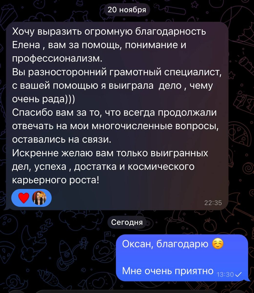 ## Дистанционное сопровождение дела Иногда для доверителей затратно оплатить полное ведение дела. В таком случае оптимальным вариантов будет, когда я готовлю документы, консультирую, а доверитель сам ходит в судебные заседания. Я готова поддерживать ваше дело на каждом этапе, не требуя личных встреч. Все необходимые консультации и документы можно подготовить удаленно)) Получила отзыв от своей доверительницы - мы выиграли дело, которое сопровождала дистанционно и готовила процессуальные документы 🤗 Спор был связан с выплатами ребенку единовременных пособий и страховых сумм после гибели военнослужащего в период прохождения военной службы при выполнении боевых задач в ходе СВО на новых территориях. Страховая произвела выплаты только родителям погибшего. В итоге решением суда исковые требования удовлетворены, взыскано неосновательное обогащение, проценты за пользование чужими денежным средствами, расходы на юридические услуги, оплата госпошлины. А еще более приятно, когда доверитель