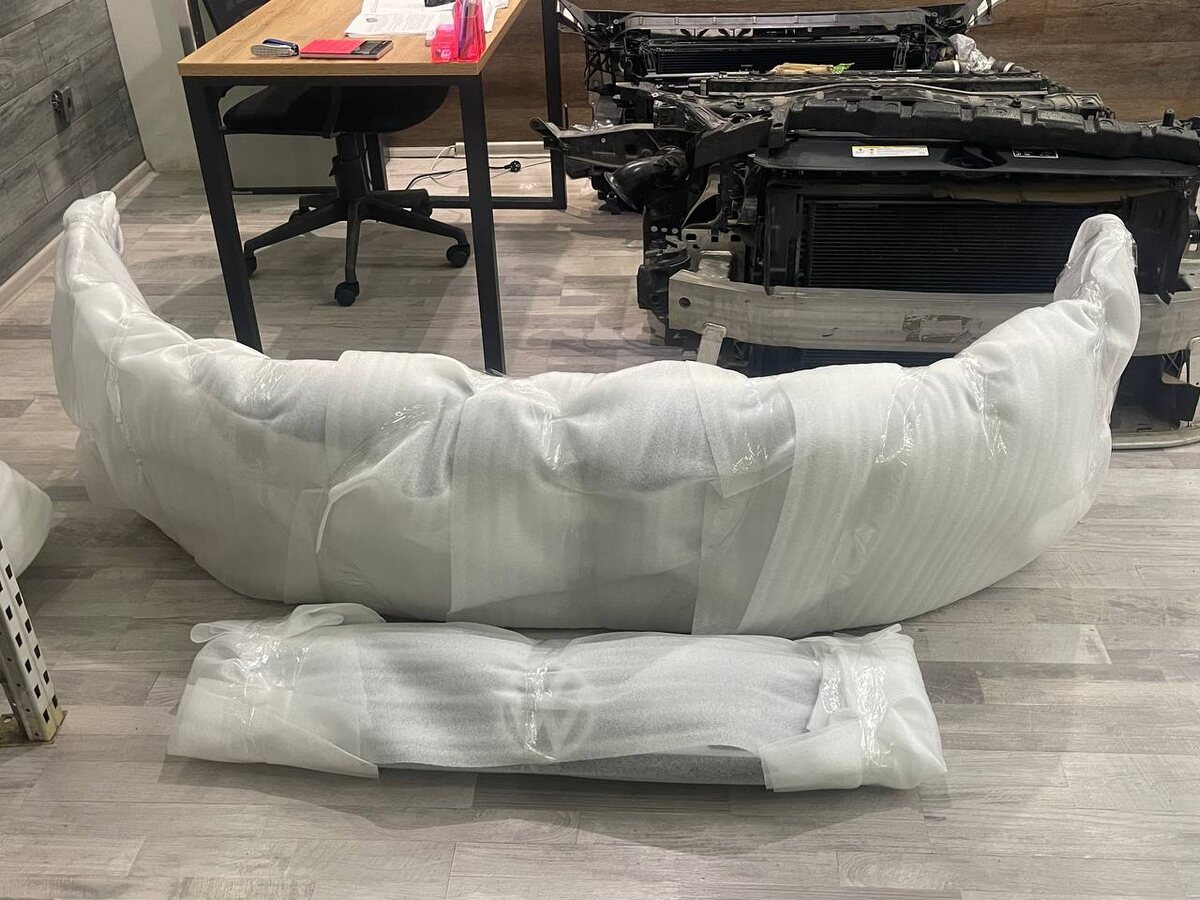 Бампер полностью в сборе, с проводкой и противотуманными фарами!