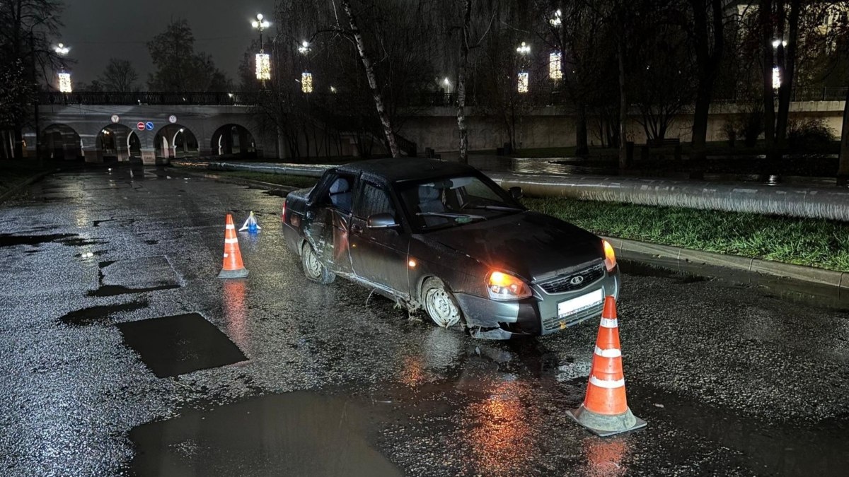Орловец на «Приоре» не заметил бордюр и столб