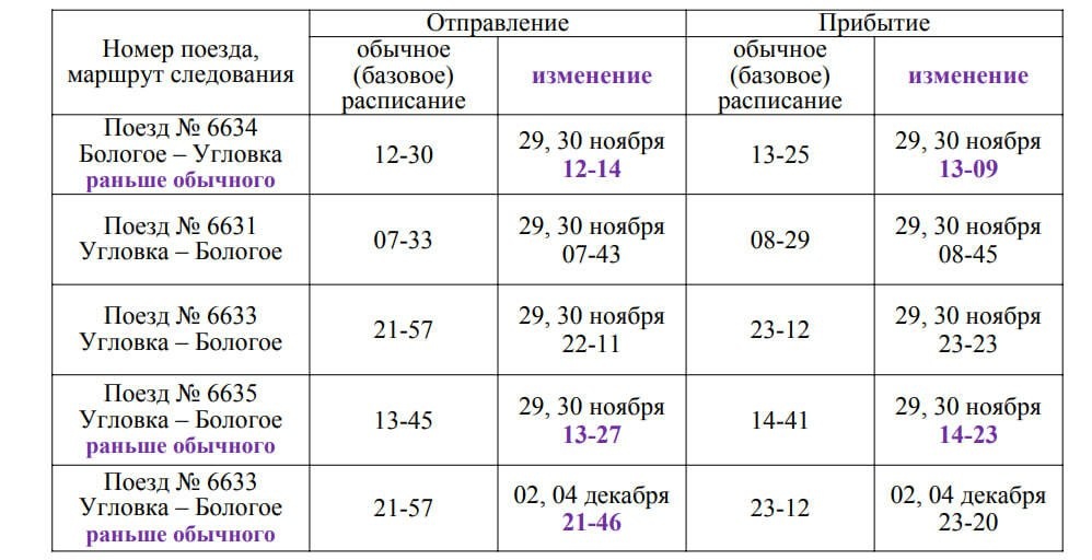 Уважаемые жители Боровичского муниципального округа! 🚂 В связи с предоставлением «окон» расписания движения пригородных поездов, курсирующих между станциями Бологое-Московское и Угловкой по измененному расписанию проследуют следующие пригородные поезда.