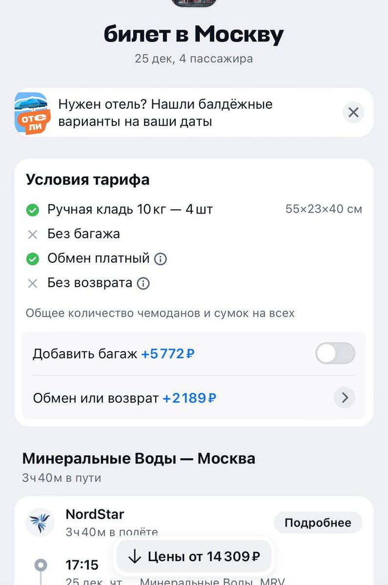 НОЯБРЬ все же лучшее время для покупок ПУТЕШЕСТВИЙ. 🔥🔥🔥 Мы купили билет на 4х МинВоды - Москва за 14500 руб (180$) на декабрь. Еще в октябре эти же билеты стоили 35 000. Рекомендую именно сейчас планировать будущие путешествия. Мы скоро выложим календарь наших туров на 2026 год. Но еще в декабре можно приехать к нам в Приэльбрусье или организовать предновогодний тур в Грузию, Армению или Беларусь. На Севере в Вологде уже настоящая зимняя сказка❄️ А везде уже волшебная праздничная атмосфера🎄🎄🎄 @Synkova_El по любому вопросу