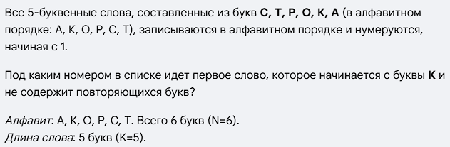 🔢 Задание №8 ЕГЭ-2026: Комбинаторика на максималках Задание №8 — одно из тех, где можно получить заветный балл, используя два подхода: аналитический (формулы) или программирование (Python). Эксперты сходятся во мнении: для сложных условий, которые все чаще появляются в вариантах, надежнее всего использовать код. Суть Задания Вам нужно посчитать количество комбинаций (слов, чисел, последовательностей), которые удовлетворяют определенным условиям, используя заданный алфавит (набор букв или цифр). Часто эти условия связаны с позицией символа, его четностью/нечетностью или запретом на повторение соседних символов. Визуализация: Системы счисления Задачи по комбинаторике часто можно представить как числа в определенной системе счисления. (Пример изображения, демонстрирующего соответствие букв цифрам в 5-ричной системе счисления) Пример Задания из Демоверсии 2026 (условный) Алгоритм Решения (Программирование на Python) Самый надежный способ решить эту задачу — использовать модуль itertools