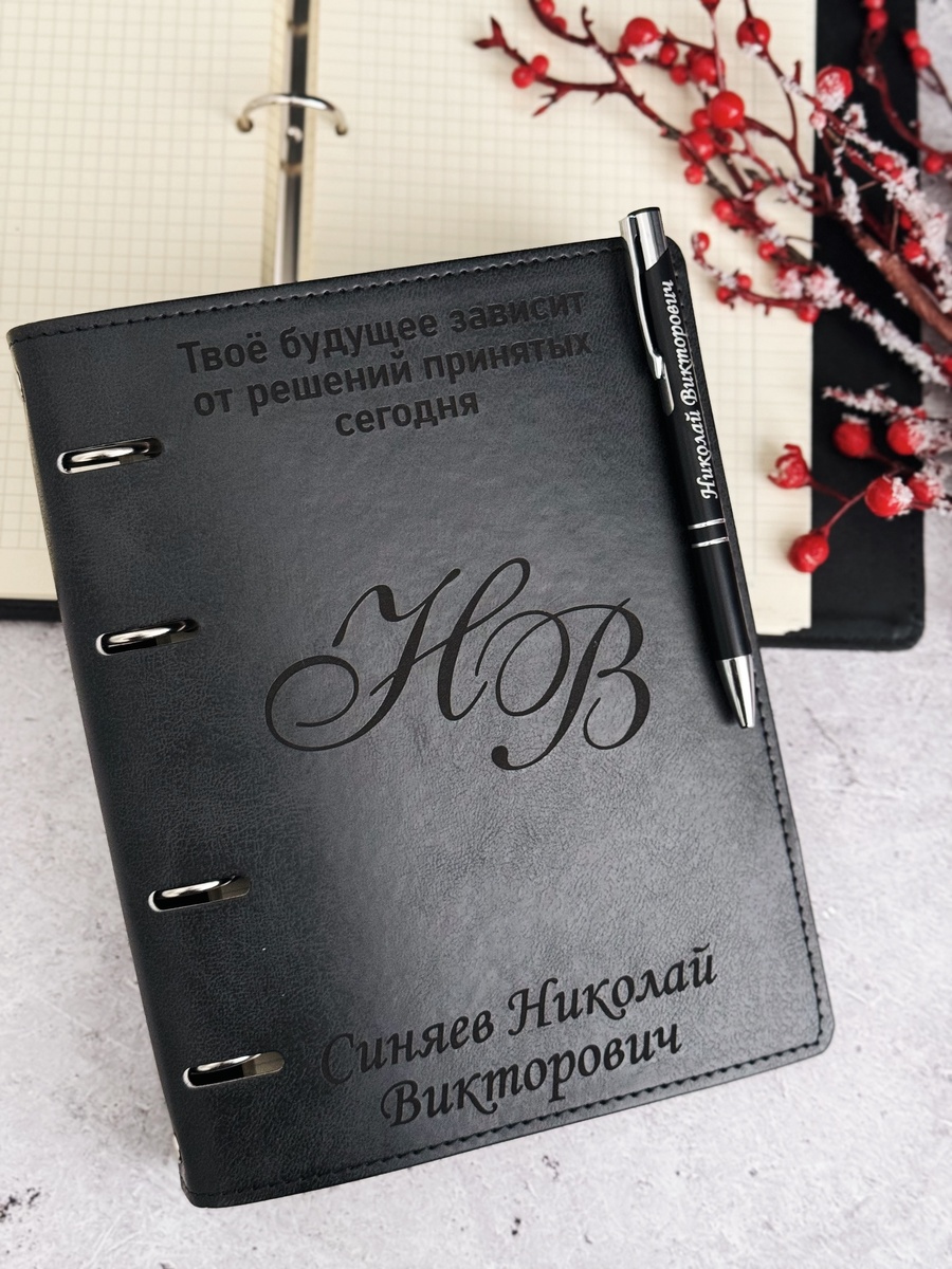 Набор, для мужчины в подарок, который он точно оценит Именной блокнот и ручка с его именем! -ГРАВИРОВКА и любой макет уже включены в стоимость -Экокожа, формат а5, листы в клеточку, сменный блок -Цвет можно выбрать В наличии есть варианты как для женщин, так и для мужчин -Изготовление от 1 дня ДОСТАВКА из Крыма ПО ВСЕЙ РОССИИ Такой набор с гравировкой - универсальный и полезный подарок для любого человека. Каждый день блокнот будет под рукой, чтобы записать важные мысли, новые идеи, планы. Отлично подойдёт к любому празднику, будь то День рождения, Юбилей, 8 марта, 23 февраля, Новый Год, профессиональный праздник или даже без повода!