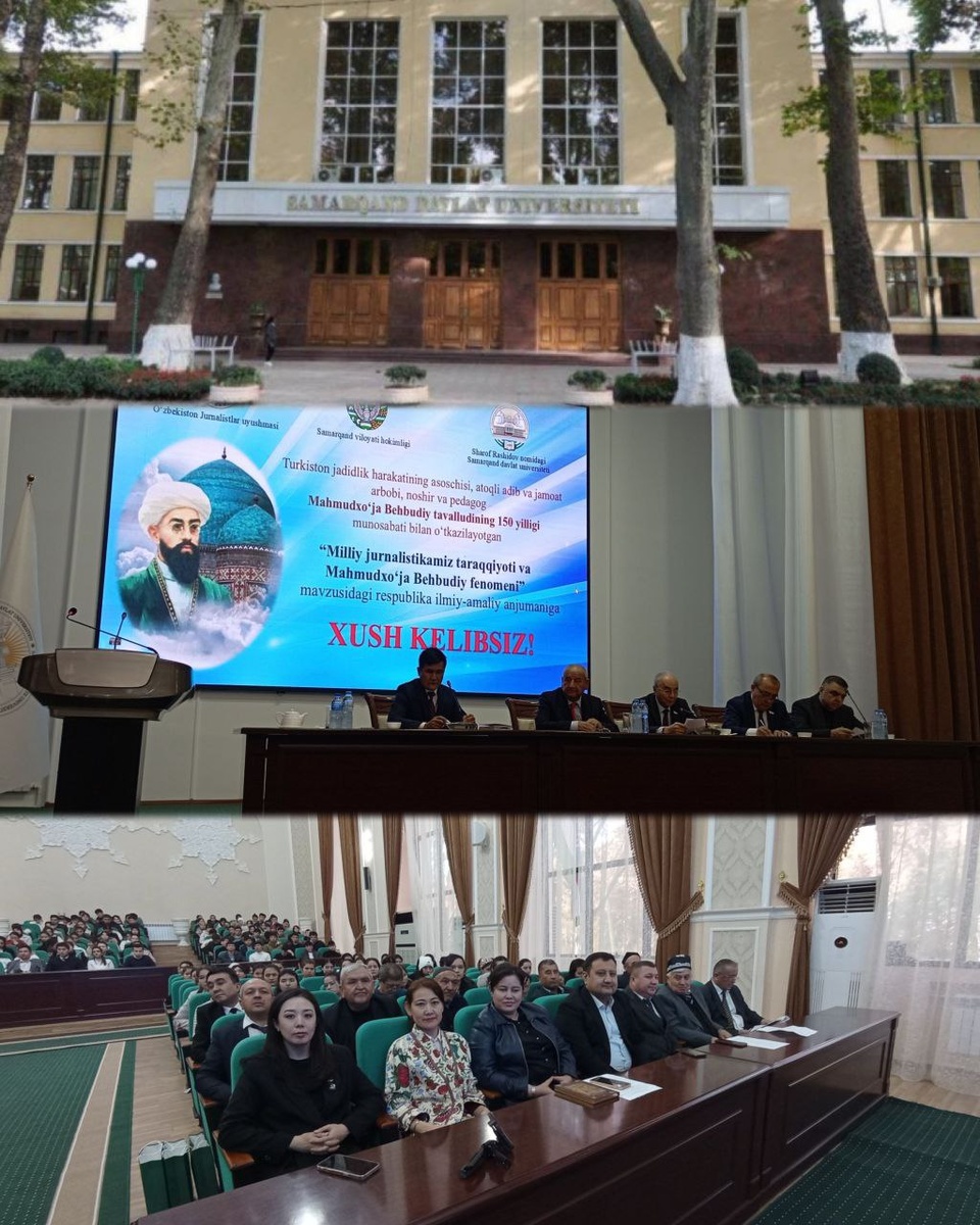 Республика илмий-амалий анжуманида жиззахлик журналистлар ҳам иштирок этишмоқда Бугун Самарқанд давлат университетида “Миллий журналистикамиз тараққиёти ва Маҳмудхўжа Беҳбудий феномени” мавзусида республика илмий-амалий анжумани ўтказилаяпти. Дастлаб, СамДУнинг янги ўқув бинолари, замонавий лабораториялари, музей ва иссиқхоналари бўйлаб пресс-тур ташкил этилди. Айни дақиқаларда университет фаоллар залида Туркистон жадидлик ҳаракатининг асосчиси, атоқли адиб ва жамоат арбоби, ношир ва педагог Маҳмудхўжа Беҳбудий таваллудининг 150 йиллигига бағишланган республика илмий-амалий конференцияси бошланди. Тадбирда олимлар, тарихчилар, университет профессор-ўқитувчилари ҳамда Тошкент шаҳри, Қашқадарё, Жиззах, Навоий ва Самарқанд вилоятларида фаолият олиб бораётган оммавий ахборот воситалари вакиллари ҳам иштирок этишяпти. Каналимизга обуна бўлинг ва энг сўнгги янгиликларни кузатиб боринг Jizzaxnews |Тelegram | Facebook | Dzen | YouTubе