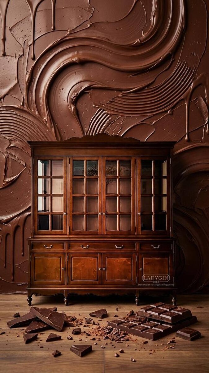 Буфет как скульптура из темного шоколада ☕️ 😁 За основу взята модель: https://fabrika-ladygina.ru/catalog/bufet/derevyanniy-vintazhniy-bufet-s-nastavnoy-chastyu 🔸 Фото сделаны при помощи ИИ.