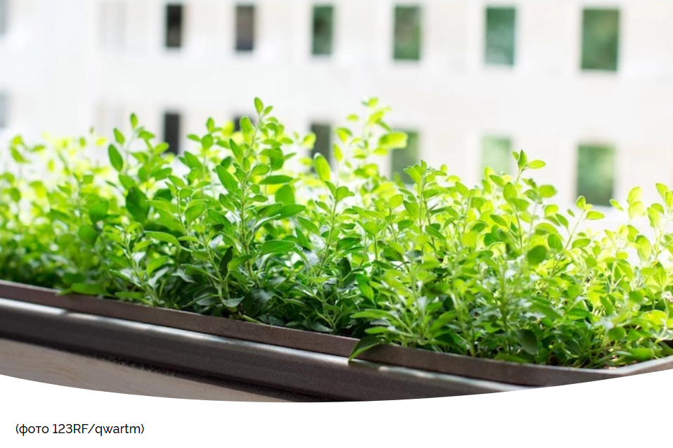 Сеют и пряные травы – базилик и кинзу, укроп и петрушку (но они долго растут). Сеять их нужно в отдельные горшки и выращивать с досветкой.