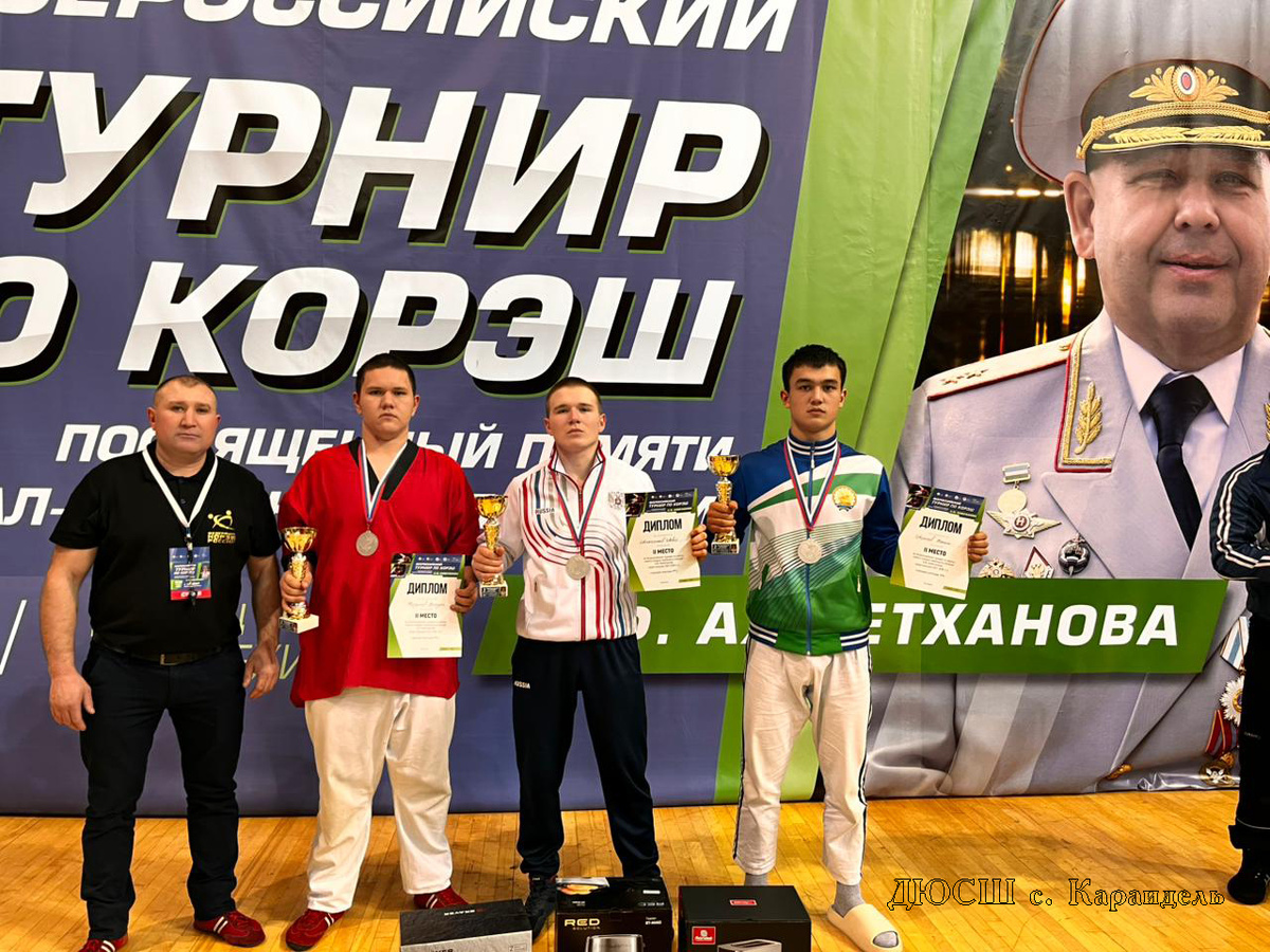 В Салавате прошел всероссийский турнир по национальной борьбе корэш, приуроченный к памяти генерал-лейтенанта полиции Артура Ахметханова. В Дворце спорта «Нефтехимик» собралось около 300 спортсменов из 25 регионов страны. Караидельские борцы продемонстрировали высокие результаты, улучшив свои спортивные достижения. В своих весовых категориях они завоевали три серебряные медали: - Анвар Ахматгалеев (65 кг), - Камиль Акрамов (70 кг), - Вильдан Нартдинов (110 кг). Мы выражаем благодарность тренерам Динару Самигуллину и Алмазу Ахметгалееву за их вклад в успехи спортсменов.
