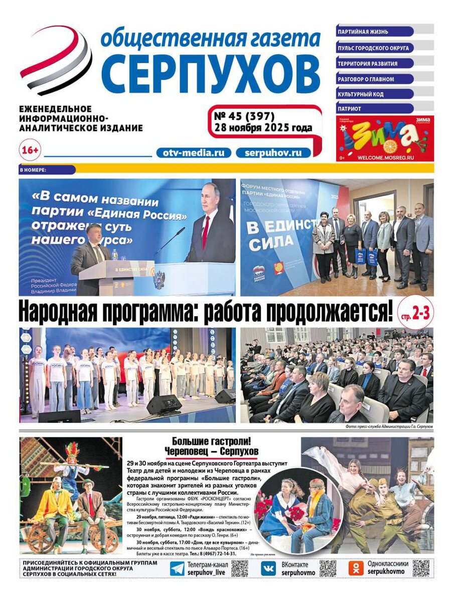 🗞️ О самых интересных событиях Серпуховского региона читайте в новом номере «Общественной газеты – Серпухов»: ______________________________________________ ✔️В единстве – сила! В Серпухове подвели итоги пяти лет работы в рамках Народной программы. Капремонты школ и стадионов, новые дороги и поддержка семей СВО – читайте в свежем номере о том, как меняется наш округ! ✔️Депутат Александр Коган проконтролировал ход капремонта детсада «Ласточка», который завершится к сентябрю 2026 года. ✔️Мама — это целая вселенная. Ученый, полицейский, бизнесмен, учитель: как мамы городского округа Серпухов виртуозно совмещают карьеру и семью? Уникальные истории ко Дню матери — в нашей статье. ✔️Итоги заседания Совета депутатов: введение туристического сбора, поддержка студентов, передача дорог и установка мемориальных досок — все главные решения в новом номере газеты. ✔️Чище вода, безопаснее среда: в Серпухове полным ходом идет модернизация очистных сооружений. Узнайте о ходе работ и новых технолог