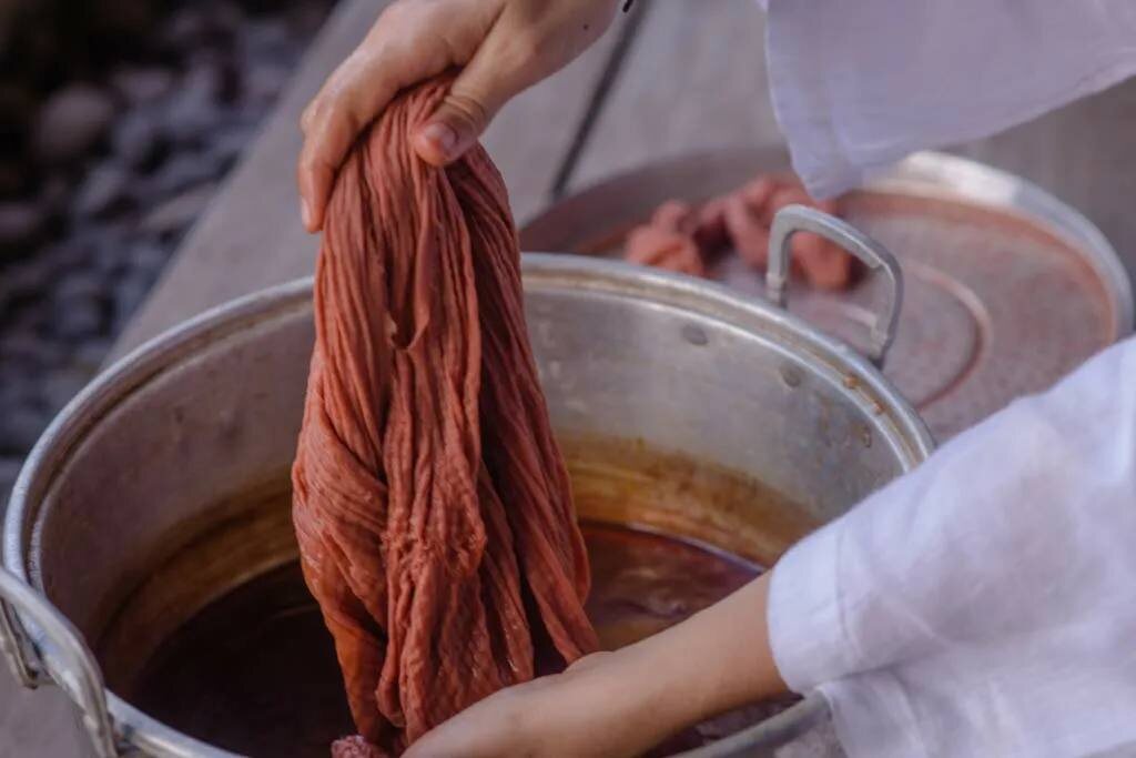 Техника окрашивания ткани соком незрелой хурмы — это древнее и уникальное японское ремесло, которое называется «Каки-сибу» (Kakishibu) или «Хлопковое окрашивание хурмой». Это не просто крашение, а сложный процесс, который придает ткани удивительные свойства. Вот как это делается: Суть процесса Основной действующий компонент — это сок незрелой, терпкой хурмы (сорт «Сибу»). В таком соке содержится большое количество танинов (дубильных веществ). При контакте с воздухом и под воздействием времени танины окисляются и придают ткани стойкий коричневато-бежевый цвет, а также делают ее прочной, водо- и грязеотталкивающей. Пошаговый процесс окрашивания Каки-сибу 1. Заготовка сока (Сибу-гаки): · Плоды хурмы собирают в конце лета или начале осени, когда они еще твердые, зеленые и невероятно терпкие. · Их измельчают и отжимают сок. · Сок помещают в деревянные бочки или глиняные сосуды и оставляют ферментироваться на несколько лет (от 1 до 5 лет!). За это время он превращается из мутной ж