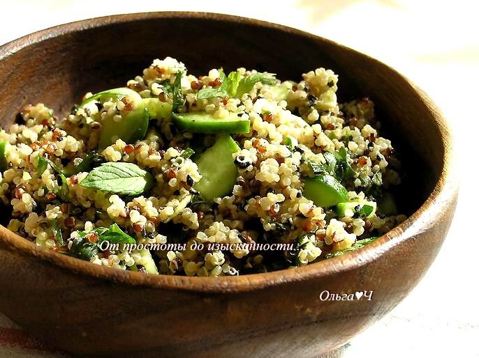 Всем доброго дня! Поздравляю с началом Рождественского поста! В ближайшие недели буду радовать вас вкусными, интересными и полезными постными блюдами! Угощайтесь, пробуйте и делитесь впечатлениями в комментариях! Мятный салат из киноа с зеленью, кунжутной пастой и тыквенными семечками - свежий, ароматный и необычный теплый салат, который вполне может заменить полноценный ужин в постный день. Попробуйте! Киноа (квиноа или кинва) - псевдозерновая культура, однолетнее растение, вид рода Марь (Chenopodium) семейства Маревые (Chenopodiaceae), произрастающее на склонах Анд в Южной Америке. Киноа имеет древнее происхождение и была одним из важнейших видов пищи индейцев. В цивилизации инков киноа была одним из трёх основных видов пищи наравне с кукурузой и картофелем. Инки её называли «золотым зерном». Информация из википедии. Ингредиенты: 0,5 стакана киноа