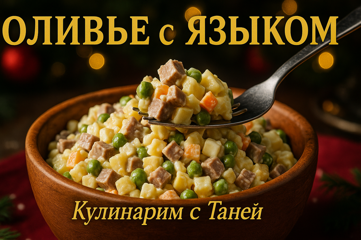 Привет, друзья! С вами Таня❤️ Сегодня делюсь рецептом, который взорвёт ваш праздничный стол! Вместо колбасы — нежнейший говяжий язык! Гости будут в шоке от вкуса и спросят рецепт. 😍 Готовим на 8-10 порций. 📋 СПИСОК ИНГРЕДИЕНТОВ 🥩Для языка (1 кг сырой = 450-500 г готового): • Говяжий язык свежий — 1-1,3 кг 🐄 • Соль крупная — 2 ст. л. • Перец чёрный горошком — 1 ст. л. (10-12 шт.) • Лавровый лист — 3 шт. 🌿 • Лук репчатый — 1 шт. (целая голова) • Морковь — 1 шт. (для аромата) 🥗Для салата: • Картофель — 5 средних (800-900 г) 🥔 • Морковь — 2 средние (250 г) 🥕 • Яйца куриные — 5 шт. (или 12 перепелиных) 🥚 • Огурцы маринованные — 4 шт. (200 г) 🥒 • Огурец свежий — 1 шт. (по желанию) • Горошек зелёный консервированный — 250 г 🌱 • Зелень (укроп, петрушка, зелёный лук) — 1 пучок (50 г) 🫙Для домашнего майонеза (250 г): • Яйцо куриное — 1 шт. • Горчица острая — 1 ч. л. • Лимонный сок — 1 ч. л. (или уксус 5%) • Сахар — ½ ч. л. • Соль — ¼ ч. л. • Масло подсолнечное рафинированное — 300