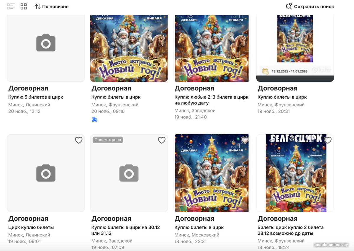 В редакцию Onlíner обратились несколько читательниц, которые рассказали о сложностях с покупкой билетов в Белгосцирк. Ажиотаж, как рассказали нам, вызвала новогодняя программа «Место встречи — Новый год». Шоу стартует 13 декабря и продлится до 11 января. В некоторые дни в расписании значатся аж по три представления в день. Вот только шансы выловить билеты, по словам читателей, близки к нулю.