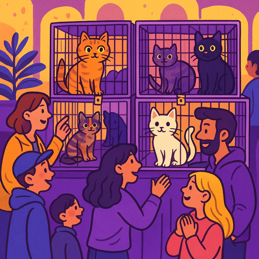 Пройдитесь между клетками, наблюдайте за реакцией животных. Для кошки выставка — стресс, но именно реакция на стресс многое говорит о темпераменте. Если сомневаетесь — расспросите опекуна: он знает питомца лучше всех.